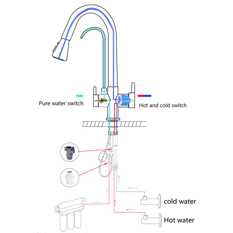 - 2 Water Outlets: Hot & Cold + Filtered Water